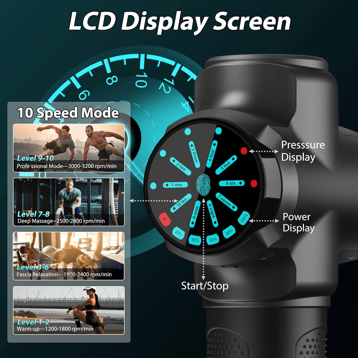 Haal de professionele massagesalon naar je eigen huis met de LifeLoom massagegun! Deze massagegun is perfect voor sporters en spierpatiënten die op zoek zijn naar een diepe spiermassage. Met een slag van 14mm en 12 verschillende massagekoppen kun je de massage volledig aanpassen aan jouw behoeften. Het LCD-scherm toont je de instellingen, zodat je altijd de juiste intensiteit kunt kiezen. Maak van je eigen huis een oase van ontspanning en koop vandaag nog jouw professionele massagegun!